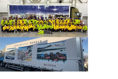 同トラックは富士市のシティプロモーションとして企画され、毎年、地域の運送会社が車両を提供して協力。今年は同社のトラックがその役割を担い、施工はこれまで同様に焼津市のするが通商(杉本貴彦社長)が行った。