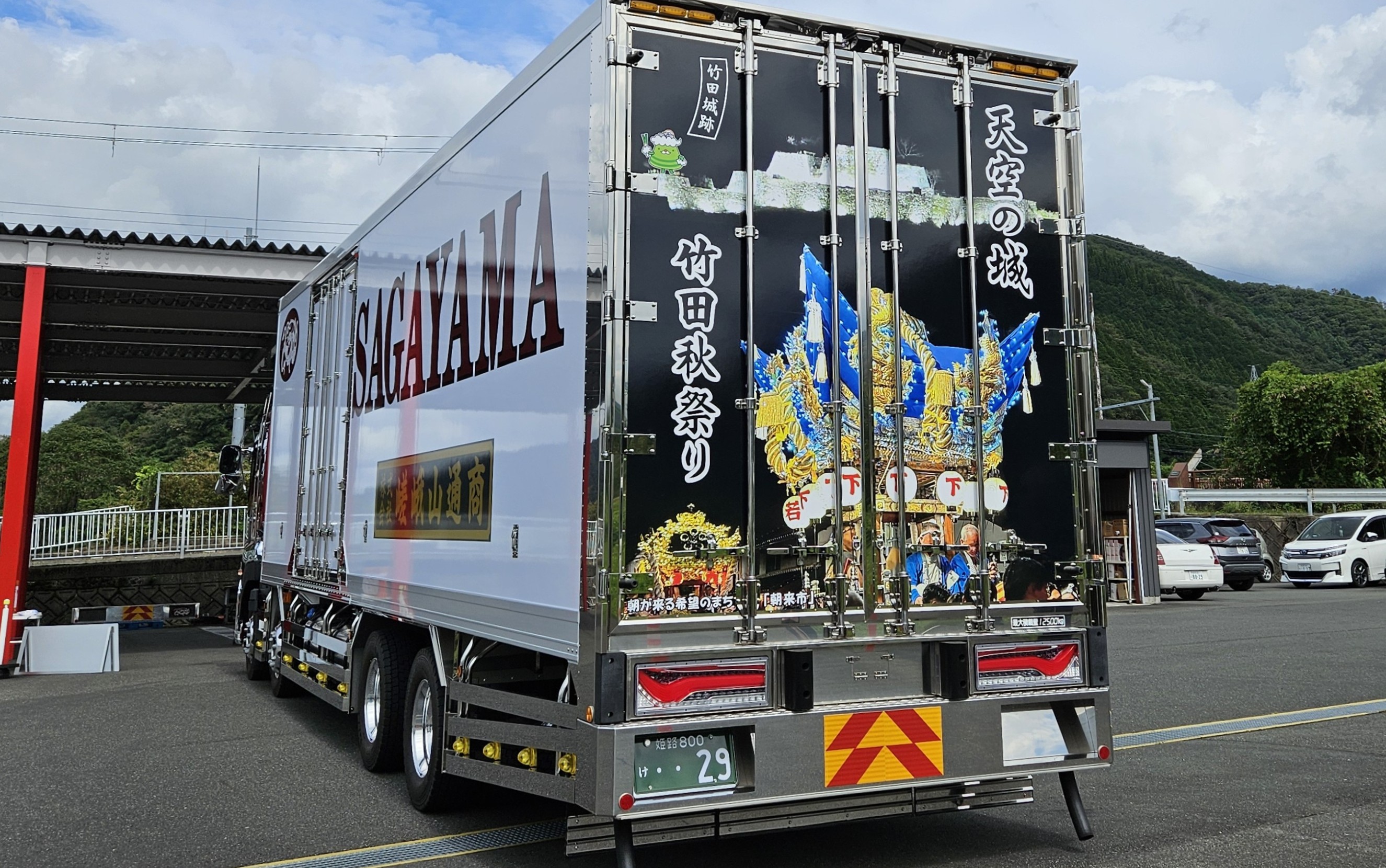 4台目となる今回の大型トラックは初めての夜バージョンで、前回の納車時に「大ヤッサ(祭り屋台)が10台、中学生以下が担ぐ小ヤッサを合わせて20台。乗り子や担ぎ手も減っているけれど、なんとか盛り上げたい」と、幸広会長が構想していた生まれ故郷・竹田地区の秋祭りとコラボしたもの。慶応3年(1867年)の大政奉還後に始まった歴史ある祭りだ。