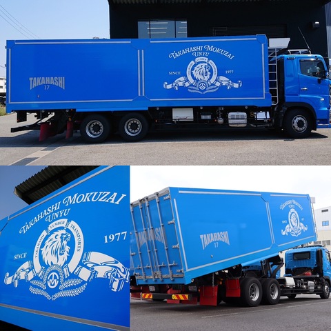 【兵庫】「今回はナイトシーン。祭りの前に完成させることができてよかった」と、このほど嵯峨山通商(嵯峨山啓社長、朝来市)に4台目の"天空の城トラック"が納車されたことを喜ぶ嵯峨山幸広会長(65)。秋の晴れた朝に発生する濃い霧が辺りを取り囲み、雲海に浮かぶ姿から天空の城として全国に知られる竹田城跡をラッピングした大型トラックは2021年5月の1号車を皮切りに、23年9月に2号車、24年1月に3号車と代替えや増車のタイミングで製作を重ねてきた。